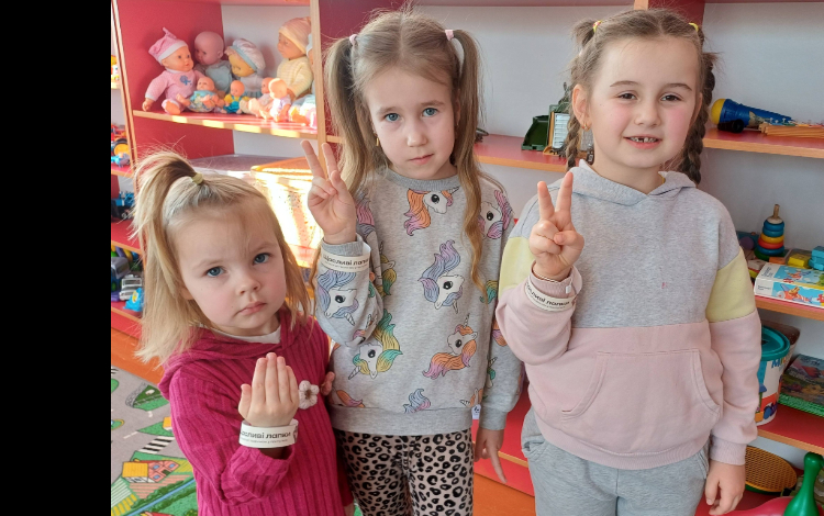 На фото — наші діти з особливими браслетами