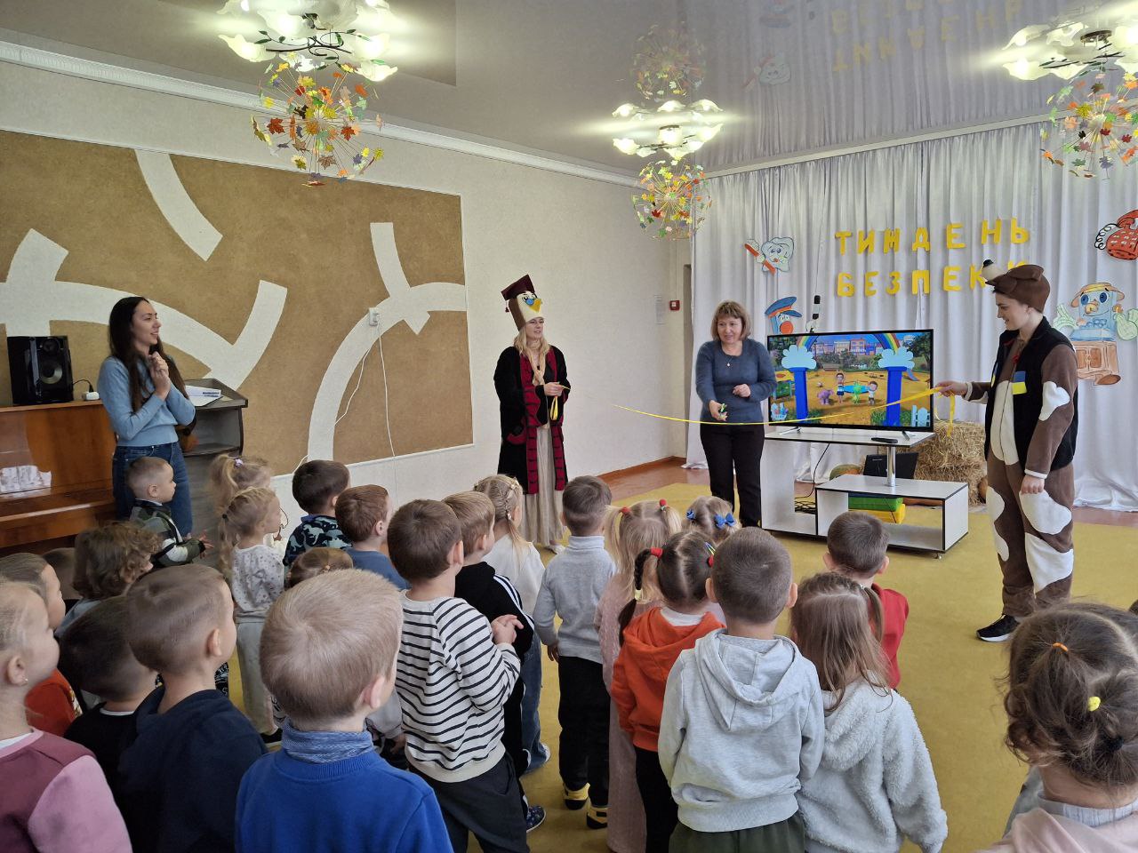 Малята переглянули пізнавальне відео про безпечну поведінку, пограли у гру «Безпечно чи небезпечно», розв’язуючи цікаві завдання й обговорюючи, як діяти правильно, а наприкінці — урочисто перерізали стрічку та офіційно відкрили Тиждень безпеки!